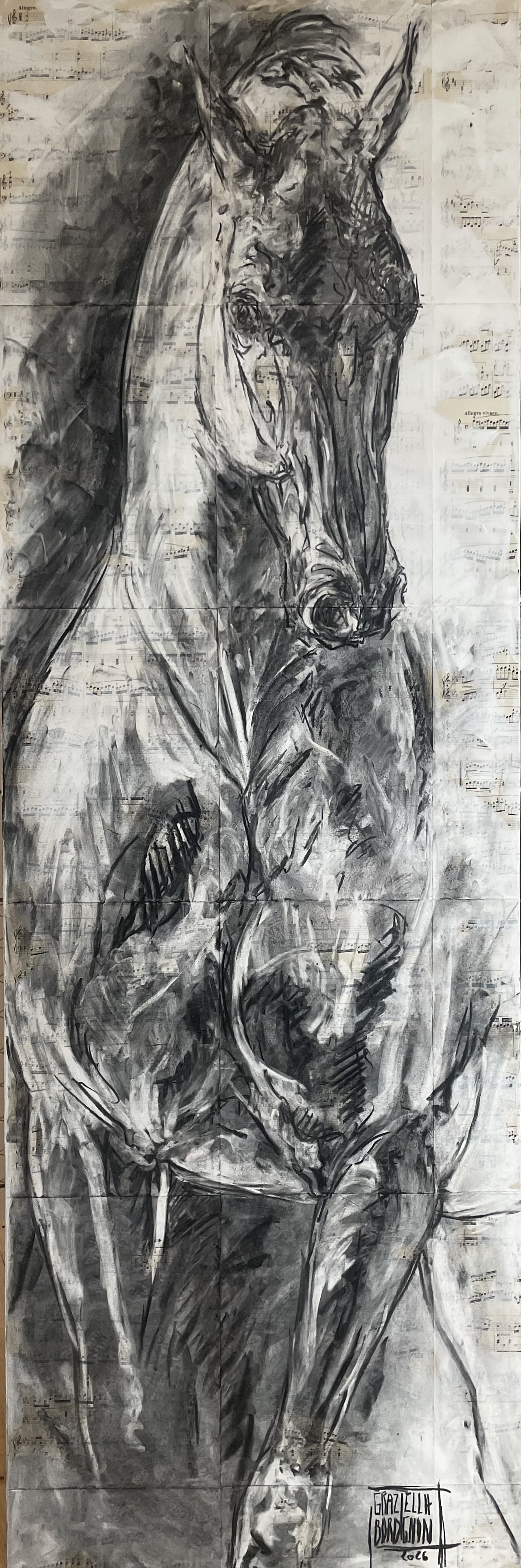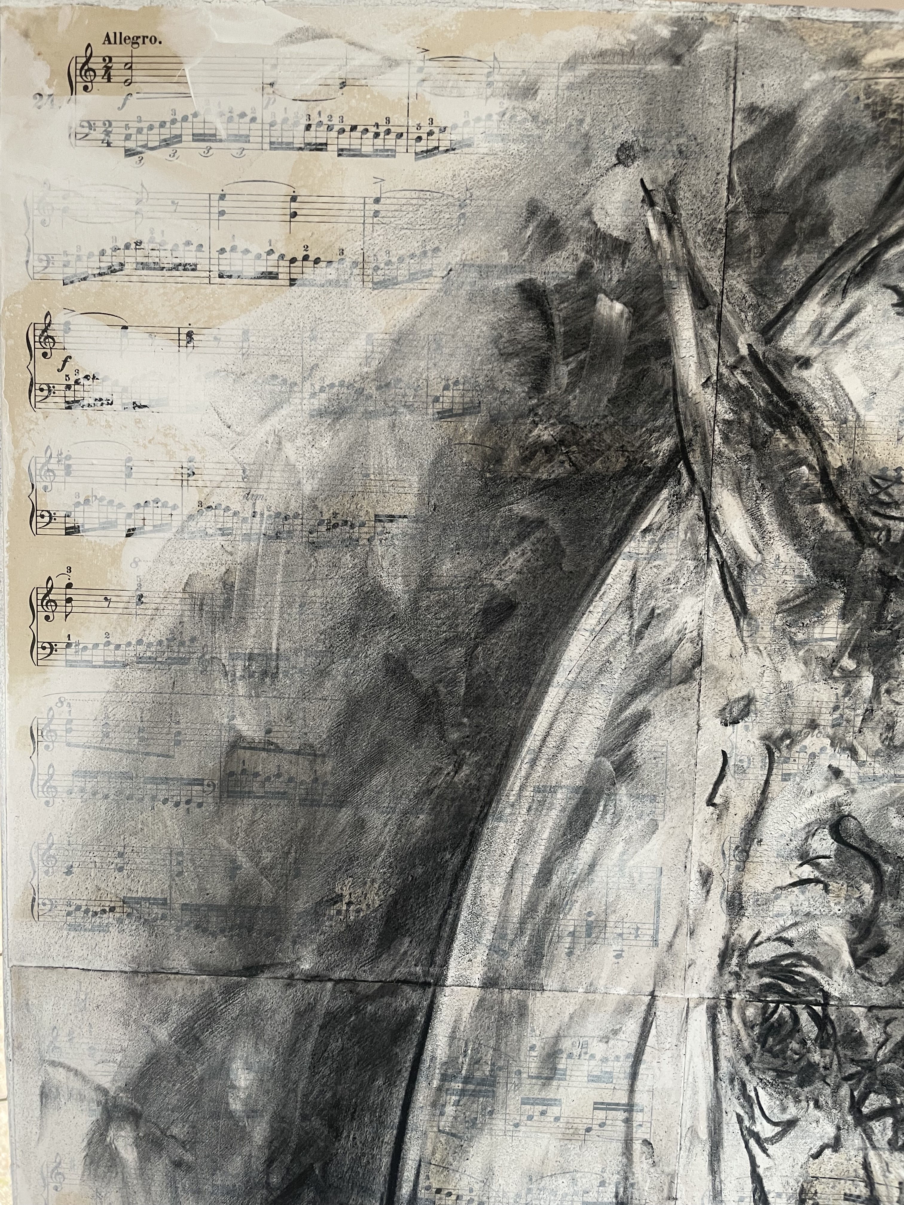 Partitions marouflées sur toile, techniques mixtes
