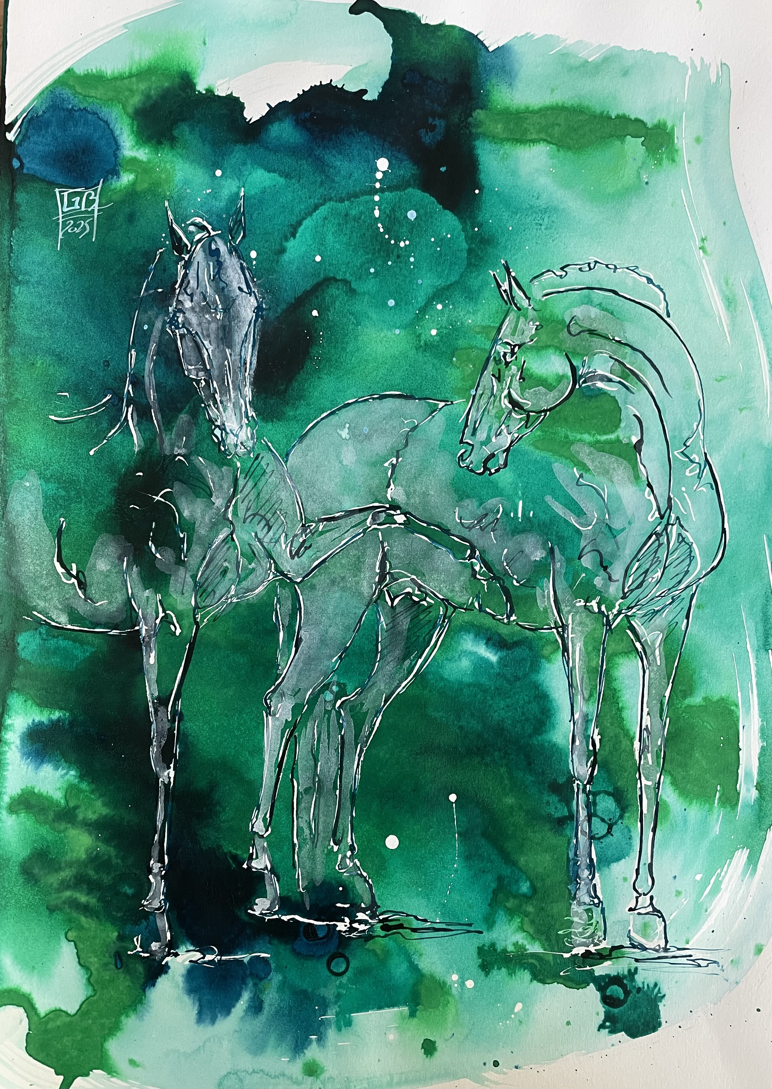 Encre sur papier encadré sous verre