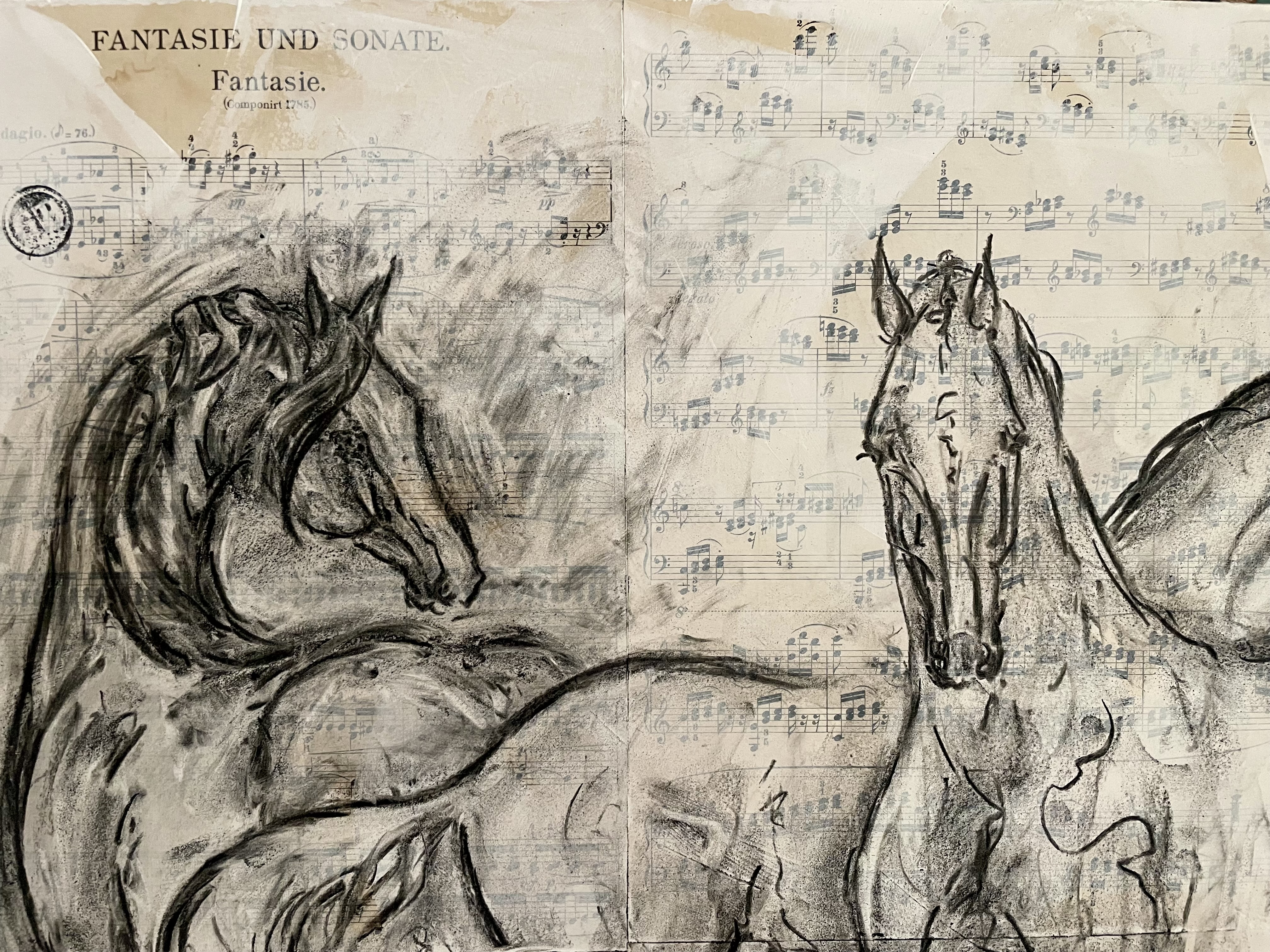 Techniques mixtes sur toile, partitions