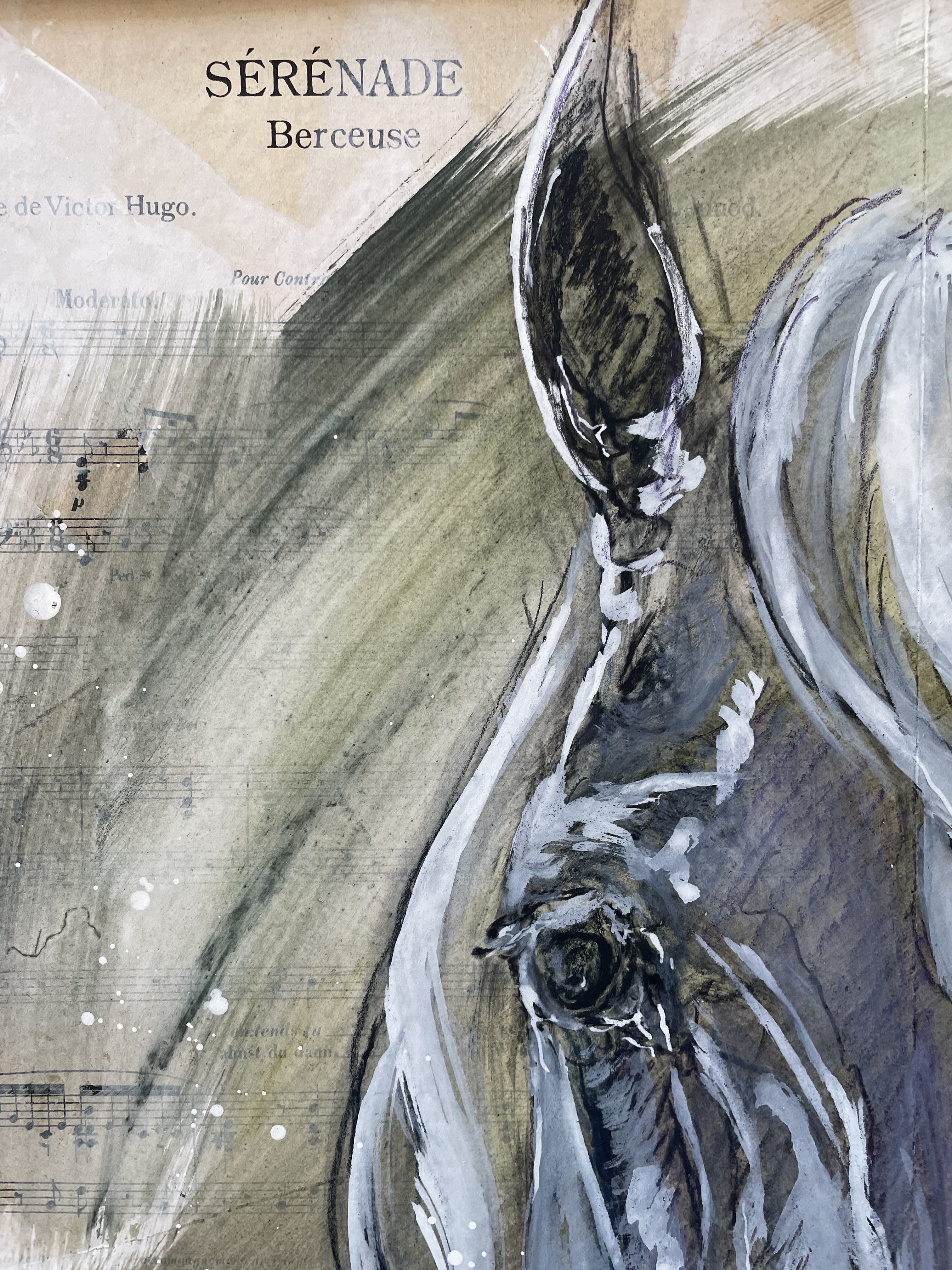 Techniques mixtes sur partitions marouflées - Cadre noir bois et sous verre