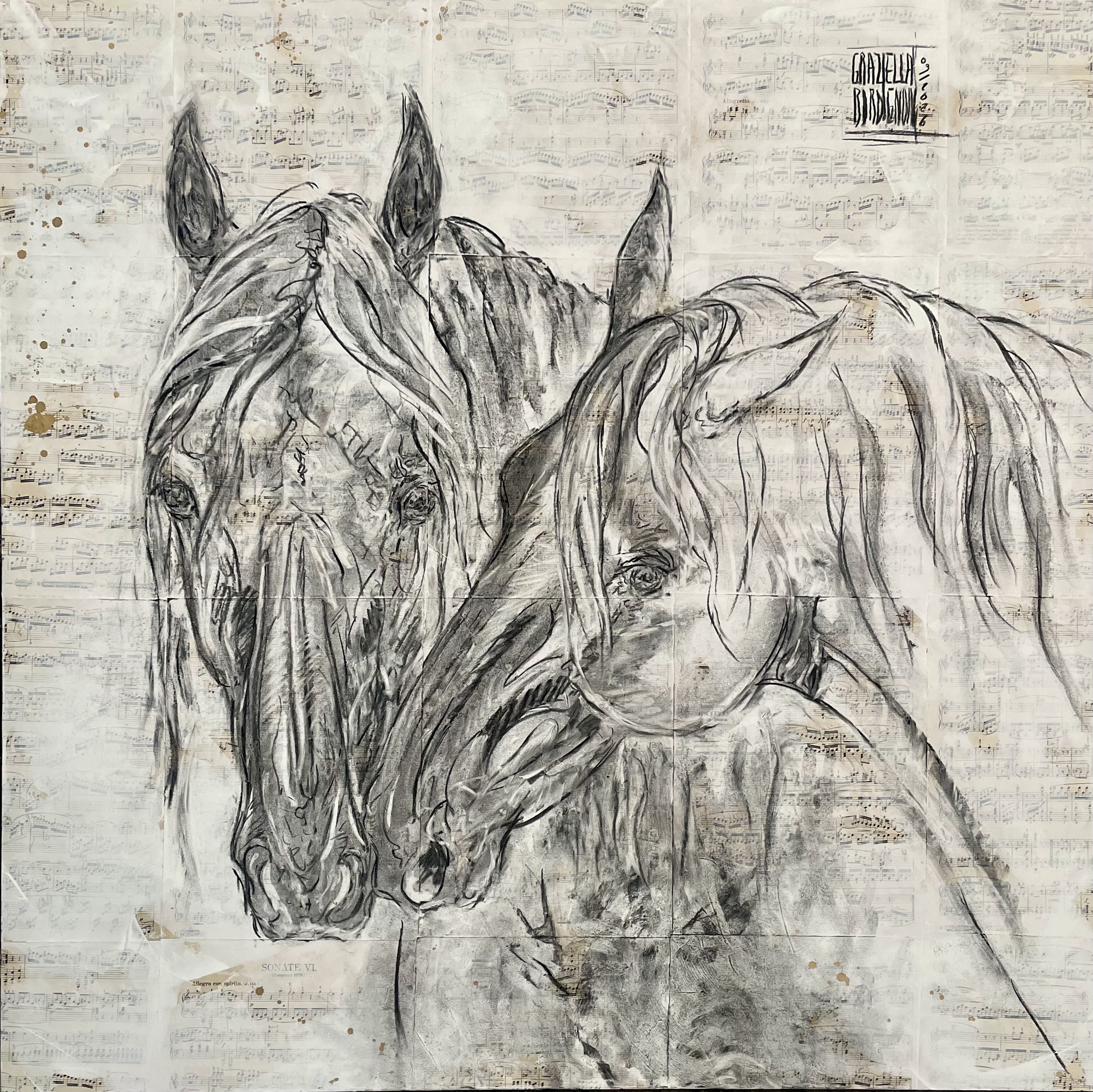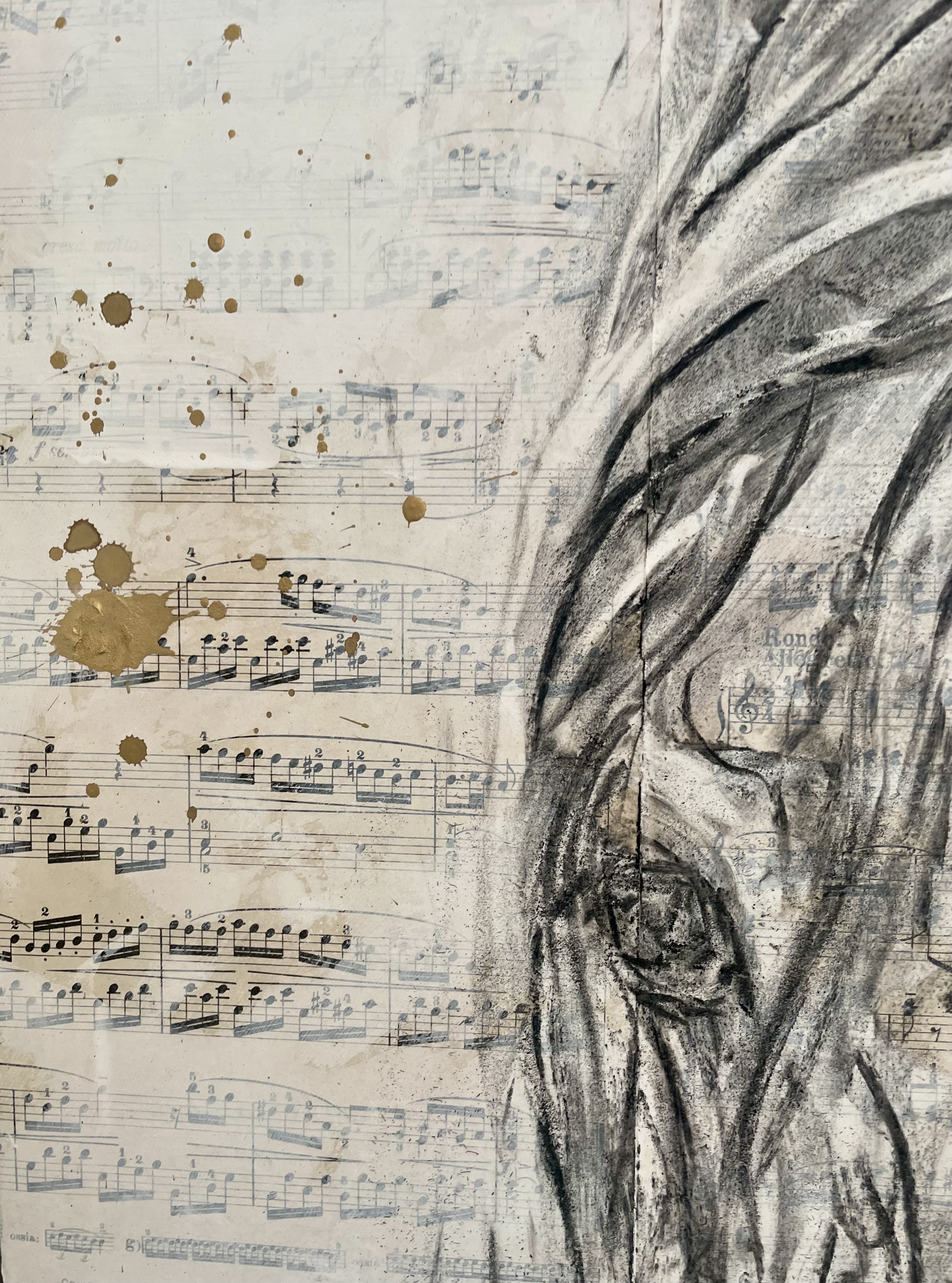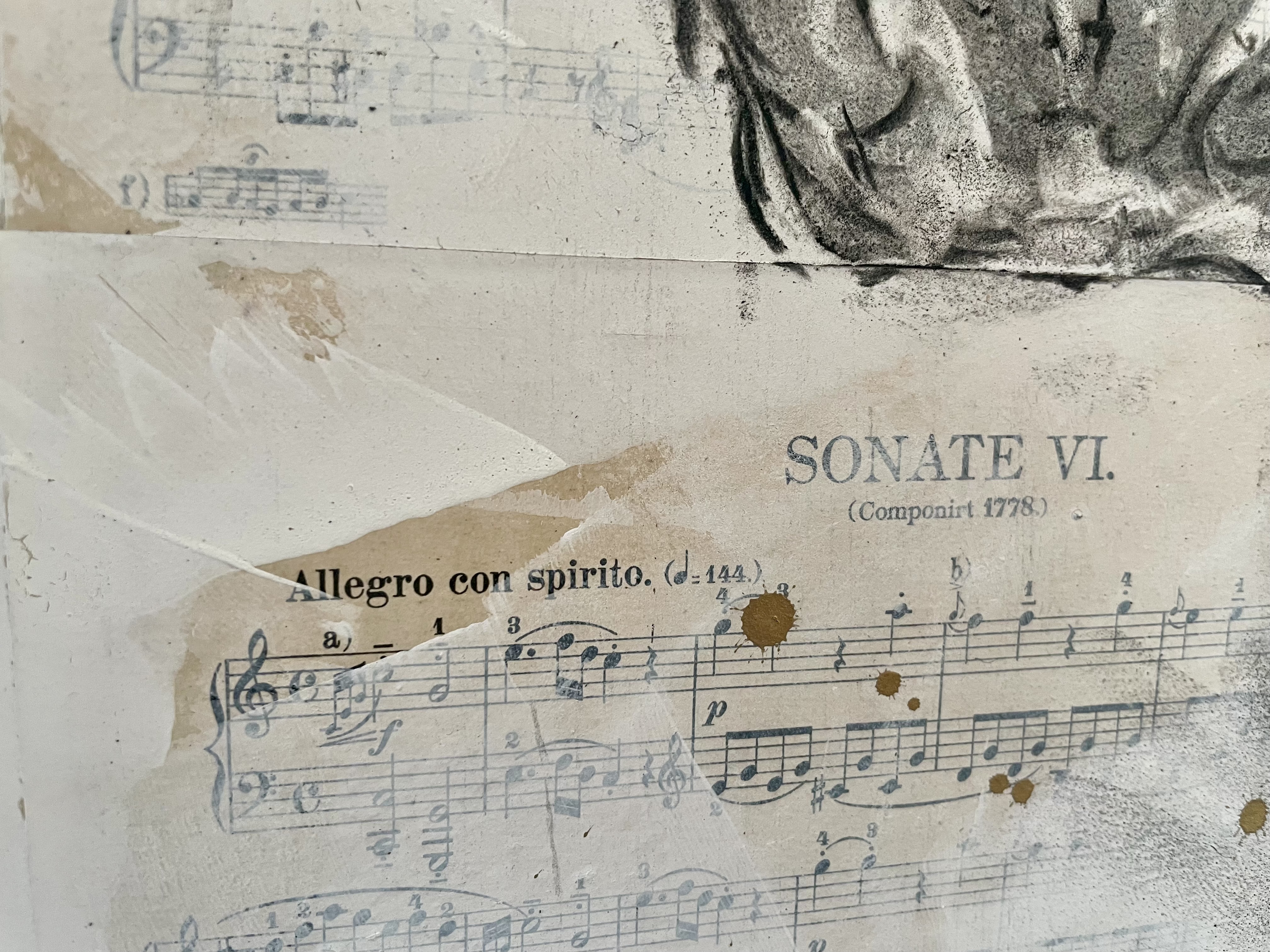 Partitions marouflées sur toile - fusain techniques mixtes