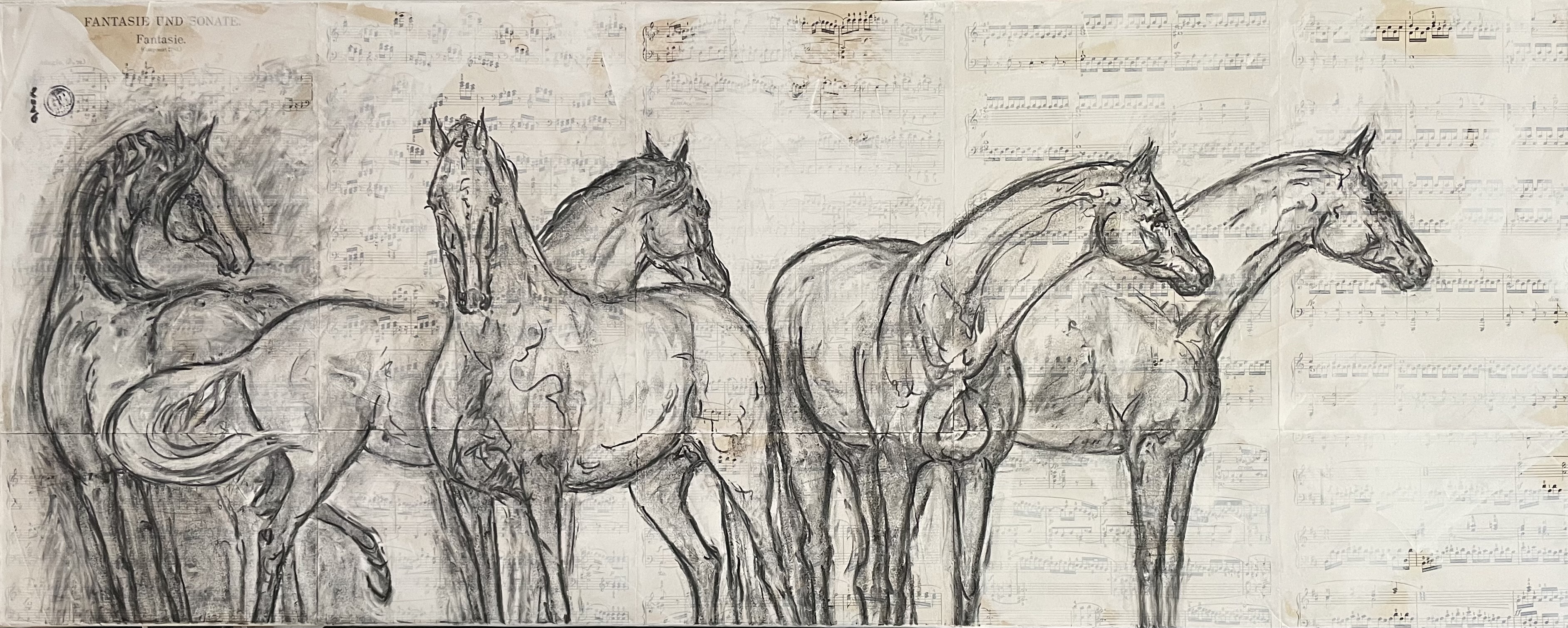 Techniques mixtes sur toile, partitions
