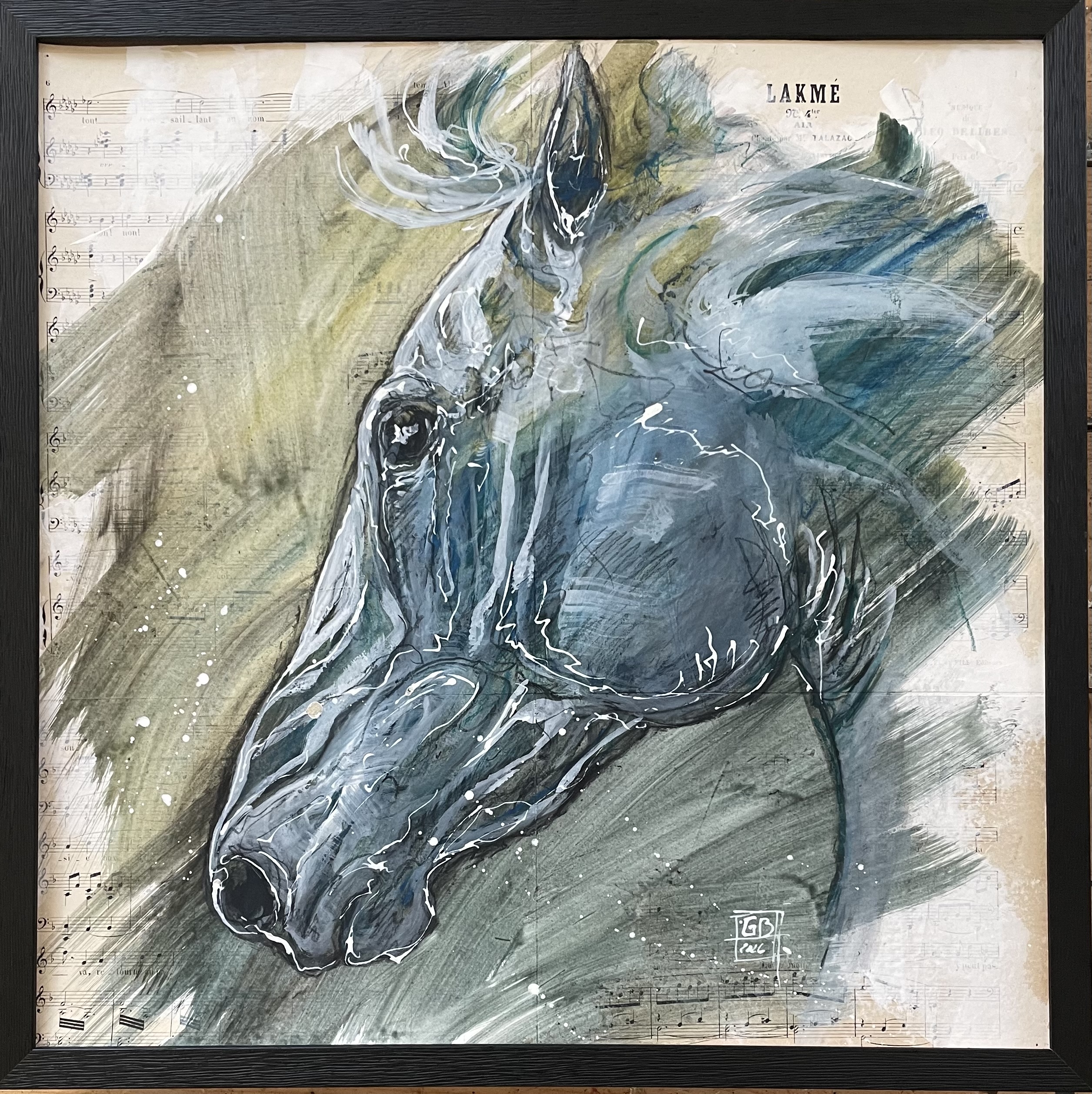 Techniques mixtes sur partitions marouflées - Cadre noir bois et sous verre